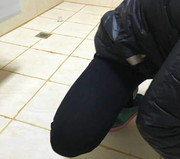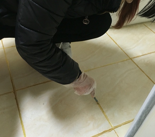 梁女士正给瓷砖压缝